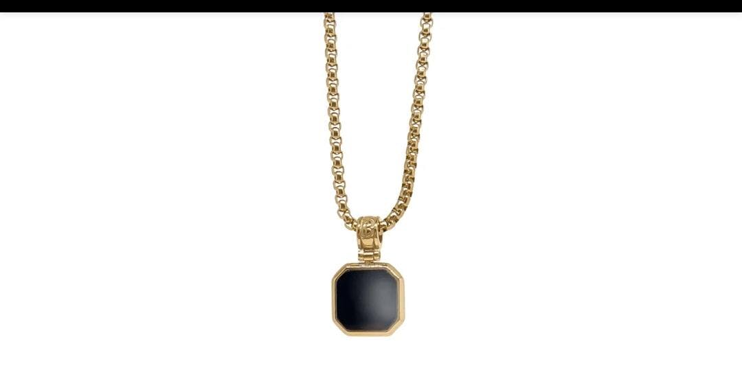 Gold-plated black leather and natural stones unite in this Nail Obsidian Gold Square Set. Bold details and refined design made to stand out.
